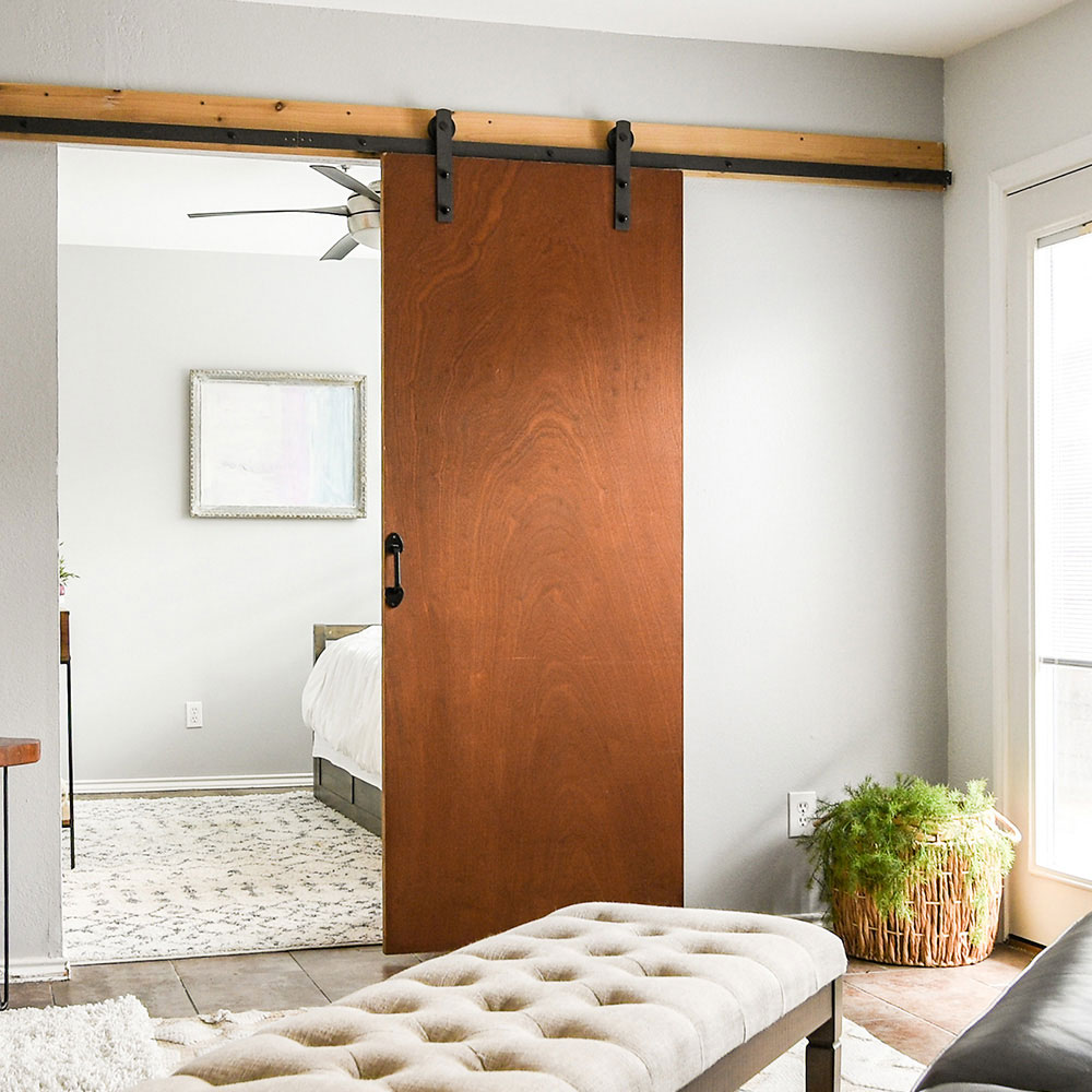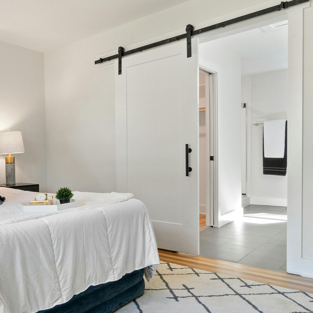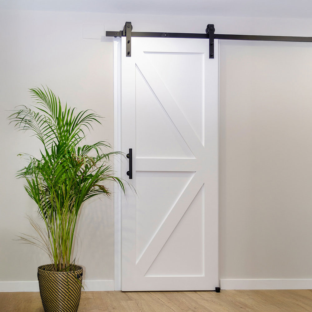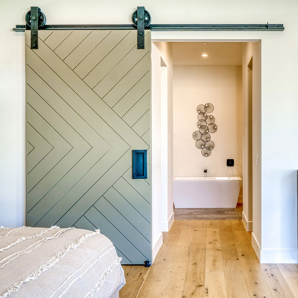Our barn doors come standard with a traditional steel barn door rail and guides. The hardware comes in either black, nickel, or gold tone. We are able to install any style or type of hardware you desire, so please reach out if you find something else you like or have any questions.